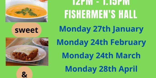 Buckie Community Lunches are usually on the last Monday of the month. [March and December are earlier] Everyone is welcome to enjoy soup and sweet made by the dream team of Dave and Ann, served up by the cheery volunteers from A Better Buckie Upcoming Lunch dates can be found in our ‘Community Events’ calendar.